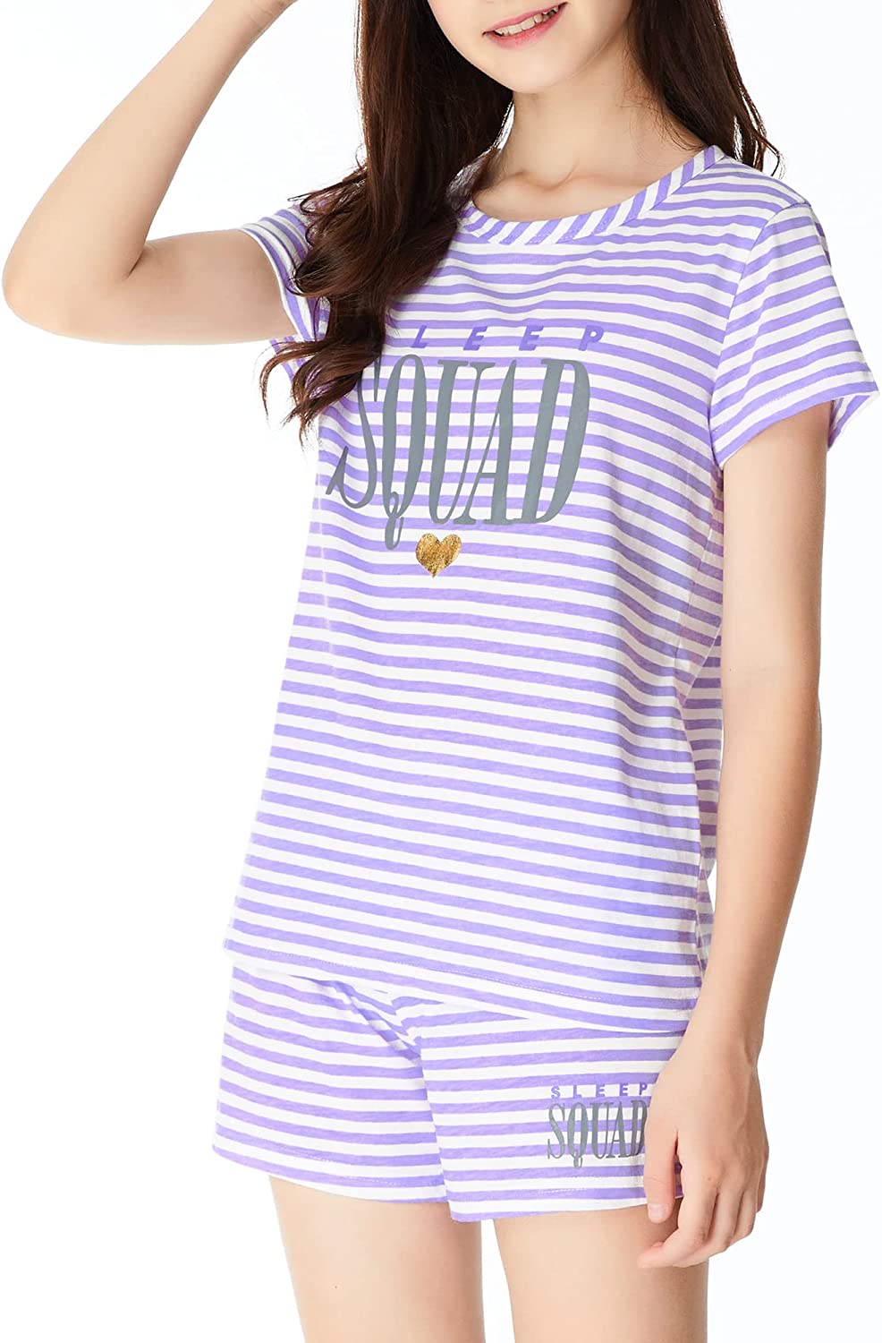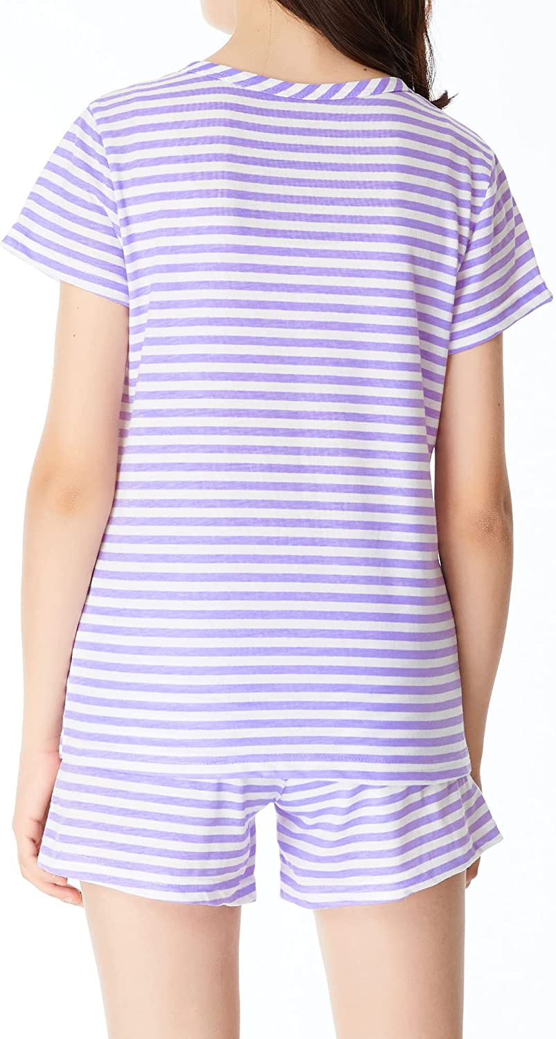 Girls Summer Pajamas - Striped and Glittered Hearts PJS Pal Cute Pajama Set Big Kids Size 6-16