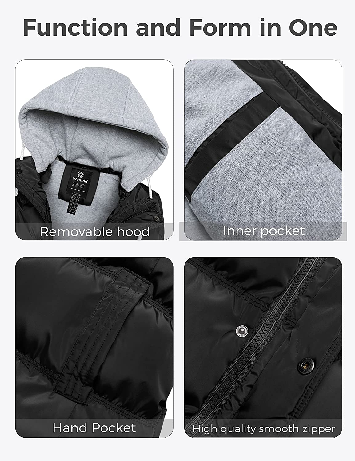 Wantdo Women's Quilted Down Vest Thickened Warm Winter Jacket With Detachable Hood