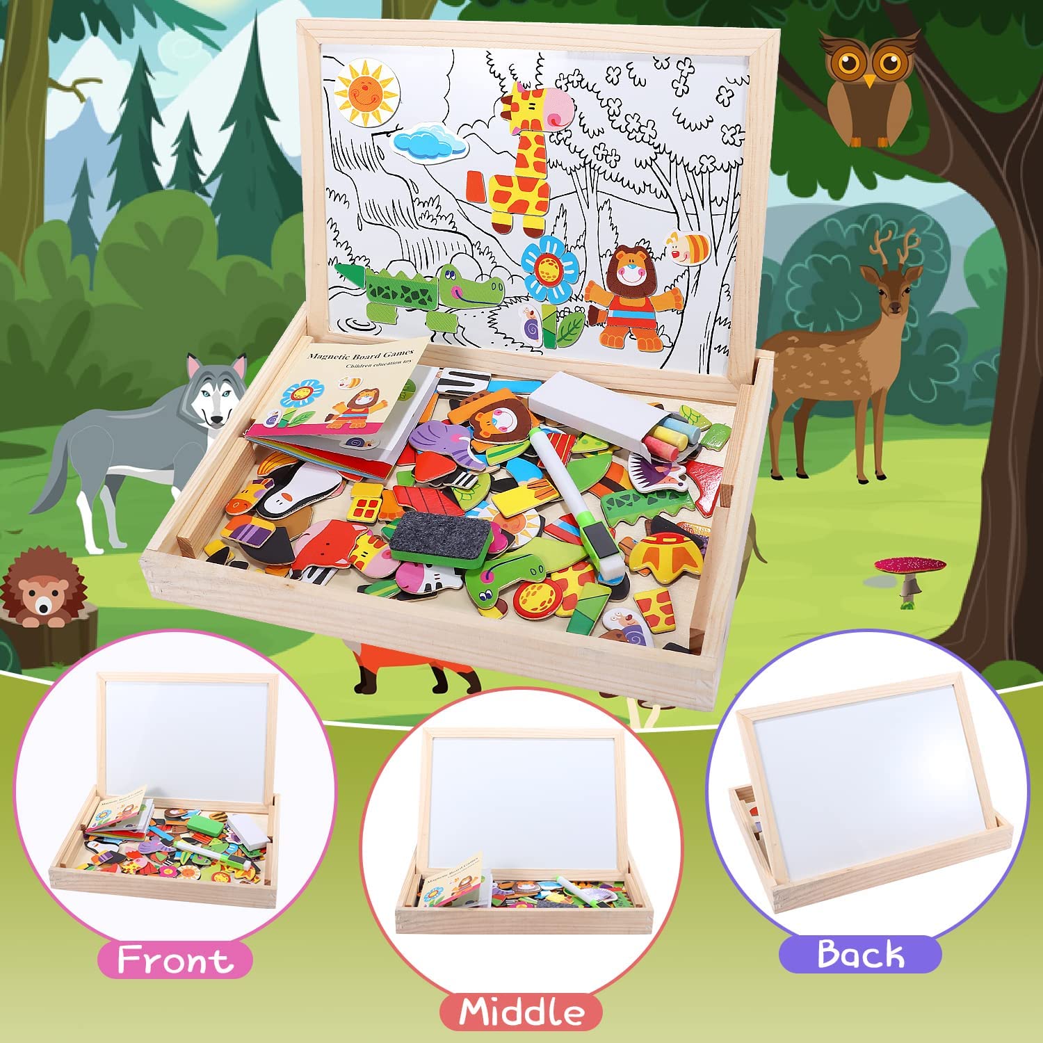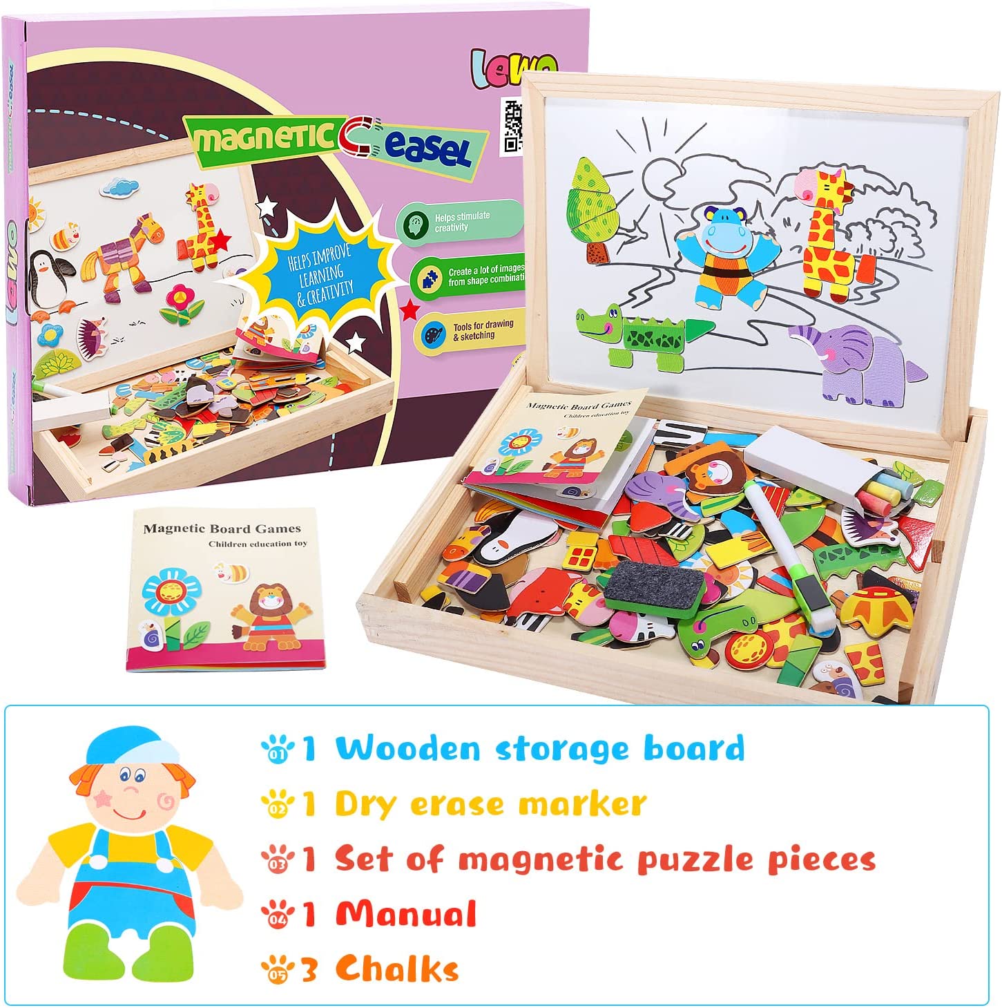Lewo Wooden Puzzle Toys Magnetic Art Easel Animal Wooden Jigsaw Puzzle Kids Games