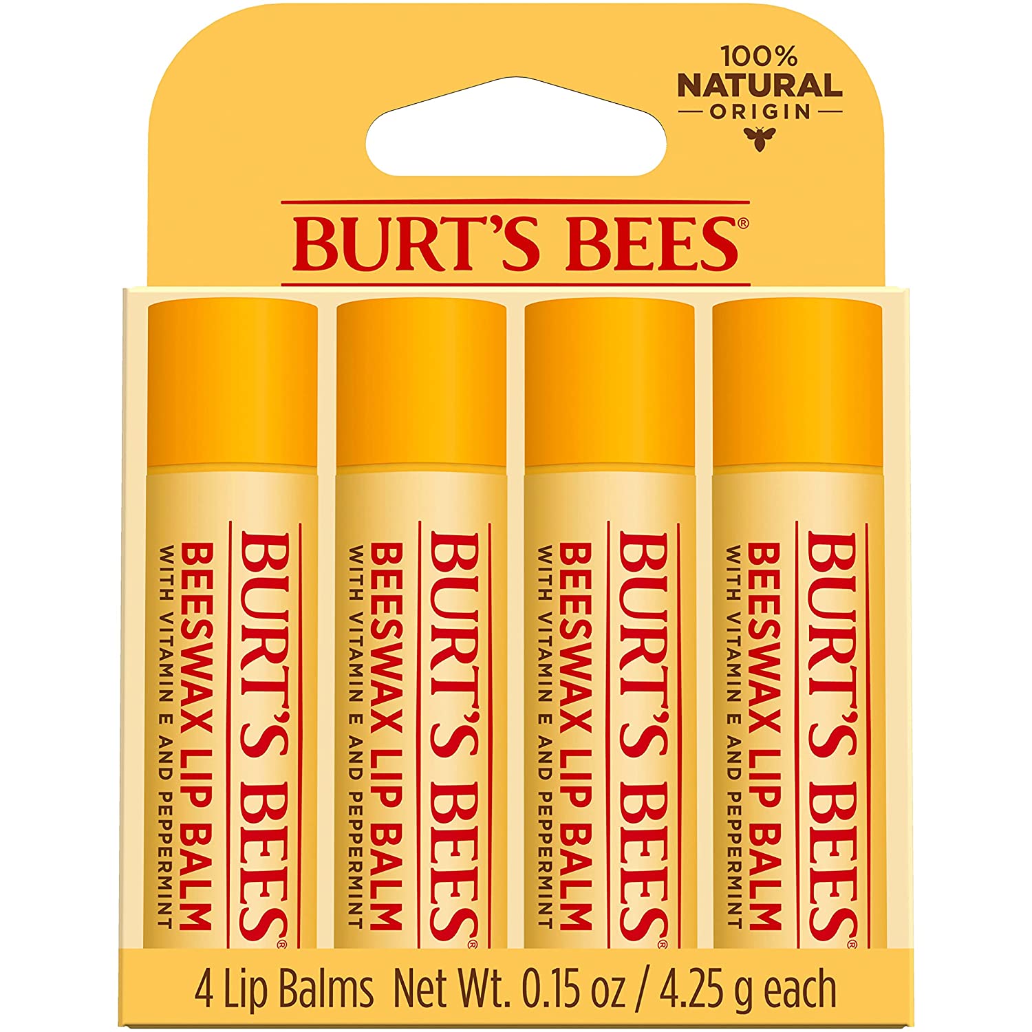 Burts Bees Lip Balm Easter Basket Filler, Moisturizing Lip Care Spring Gift for All-Day Hydration, 100% Natural, Original Beeswax with Vitamin E and Peppermint Oil (Pack of 4)